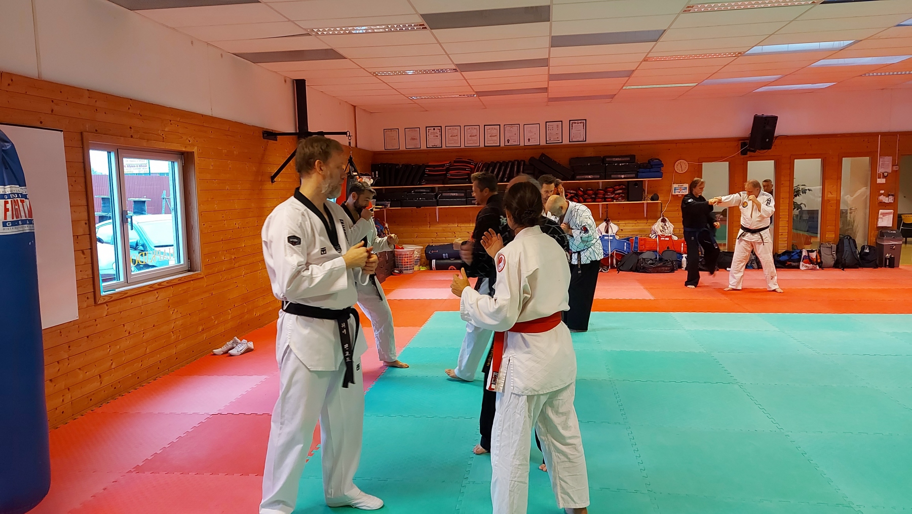 Men etterhvert som klokken tikket ned mot start endte vi opp med å bli en god samling med ivrikge deltakere allikevel. Treningen ble fordelt slik at hver instruktør fikk 30 minutter til å dele litt av sin kunnskap. Fire instruktører fikk første runde. Deretter var det en times pause hvor vi fikk spist litt før siste runde ble startet.