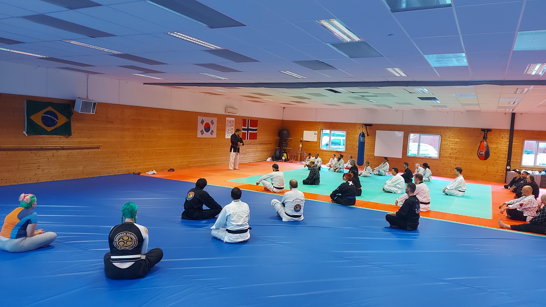 Men etterhvert som klokken tikket ned mot start endte vi opp med å bli en god samling med ivrikge deltakere allikevel. Treningen ble fordelt slik at hver instruktør fikk 30 minutter til å dele litt av sin kunnskap. Fire instruktører fikk første runde. Deretter var det en times pause hvor vi fikk spist litt før siste runde ble startet.